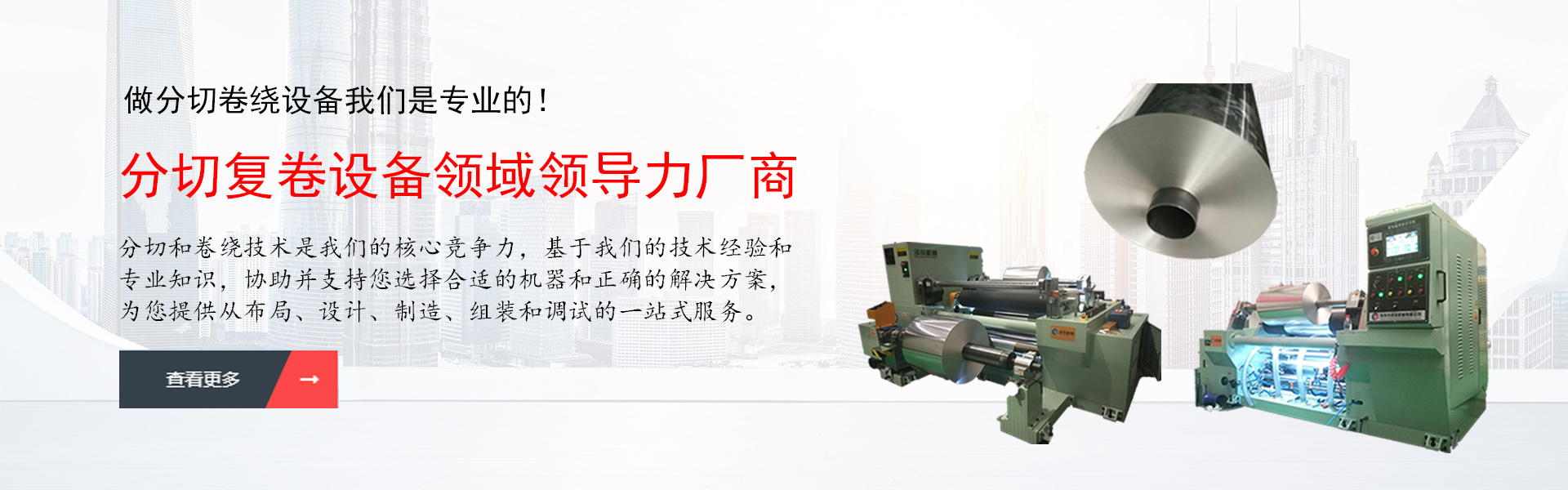 是一家集研發(fā)、生產(chǎn)、銷售、服務(wù)和技術(shù)咨詢?yōu)橐惑w的分切、復(fù)卷、卷繞設(shè)備生產(chǎn)的專業(yè)型企業(yè)